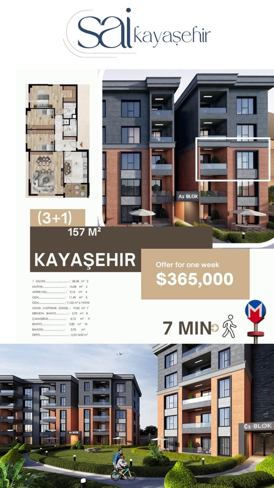 - Prime Istanbul Location: Situated in the rapidly developing center of Kayasehir, providing effortless access to the metro station just 0.5 kilometers away and the Istanbul Airport within 15 kilometers.